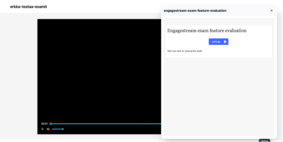 With typical settings, an exam titled “exam demo” might become available to participants after they have watched at least 1 minute of your VOD content. You have full flexibility to adjust these availability settings or add multiple exams as needed from the External Services tab.