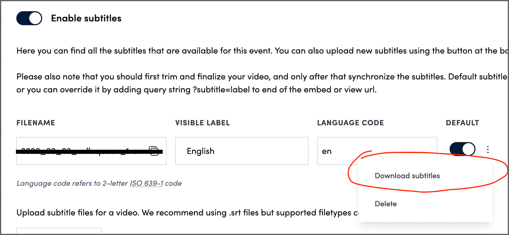 - Open Enable subtitles and make sure you have subtitles uploaded